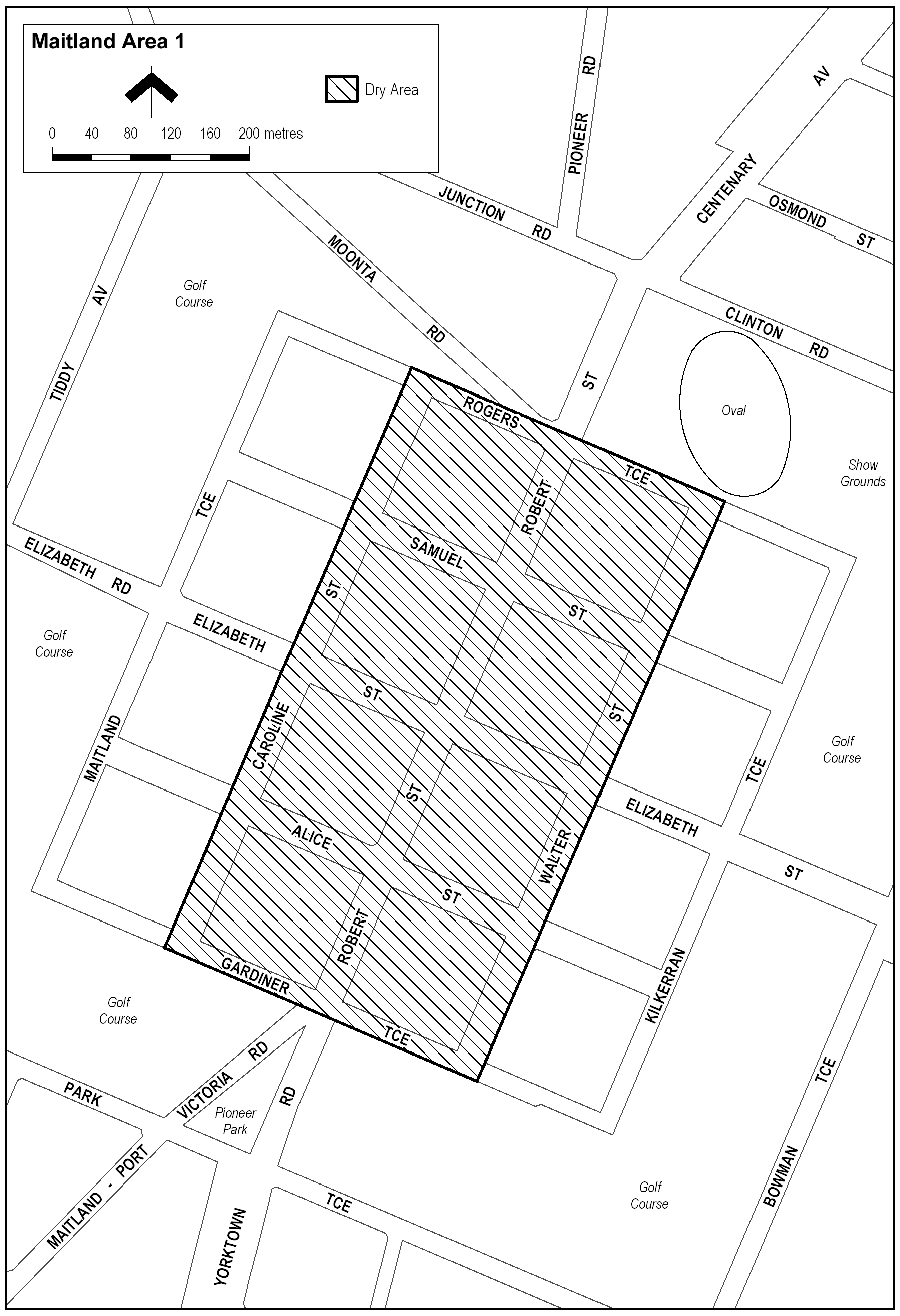 The area in Maitland bounded as follows: commencing at the point at which the southern boundary of Gardiner Terrace intersects the prolongation in a straight line of the eastern boundary of Walter Street, then north-easterly along that prolongation and boundary of Walter Street, and the prolongation in a straight line of that boundary, to the northern boundary of Rogers Terrace, then north-westerly along that boundary of Rogers Terrace to its intersection with the prolongation in a straight line of the western boundary of Caroline Street, then south-westerly along that prolongation and boundary of Caroline Street, and the prolongation in a straight line of that boundary, to the southern boundary of Gardiner Terrace, then south-easterly along that boundary of Gardiner Terrace to the point of commencement.